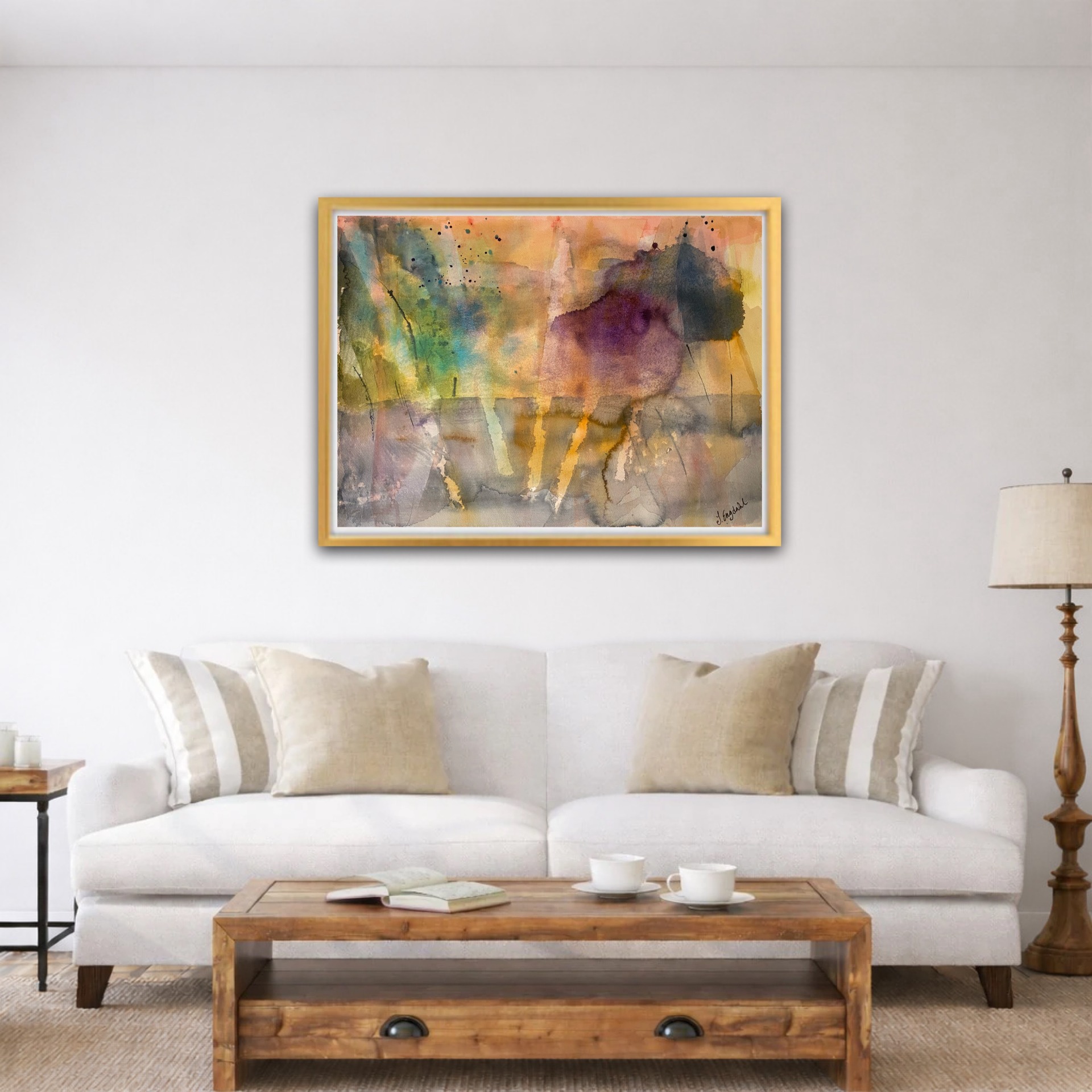 Färgglad och mysig tavla 70*100 inklusive ram. Målad på Arches 640g